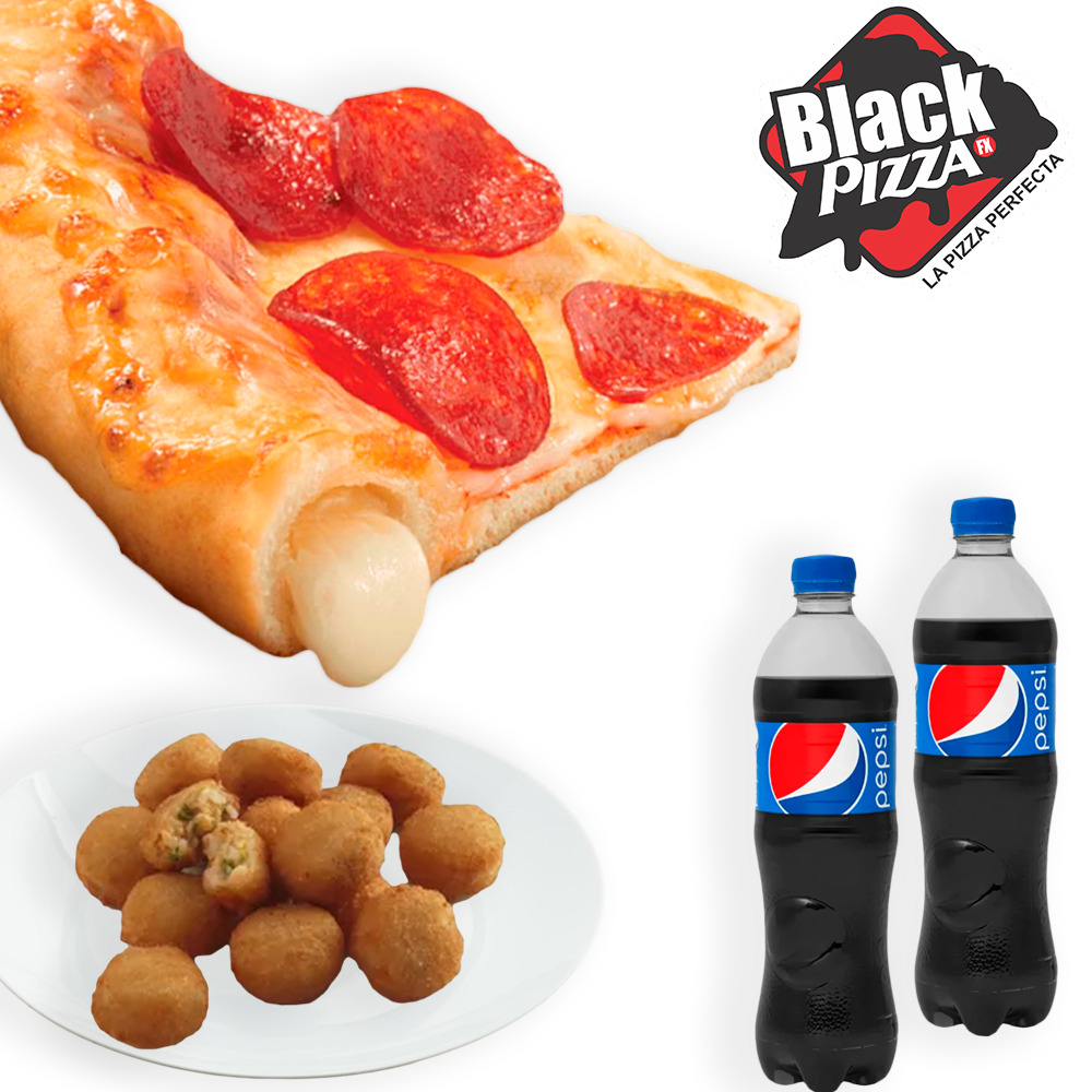 Pizza grande de Pepperoni + borde relleno de queso + refresco de 2lts
